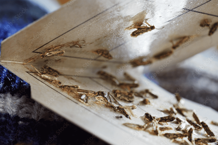Lebensmittelmottenfallen helfen, die Mottenpopulation zu kontrollieren, indem sie die männlichen Motten anlocken und fangen. Dies verhindert, dass sie sich paaren und neue Eier legen.