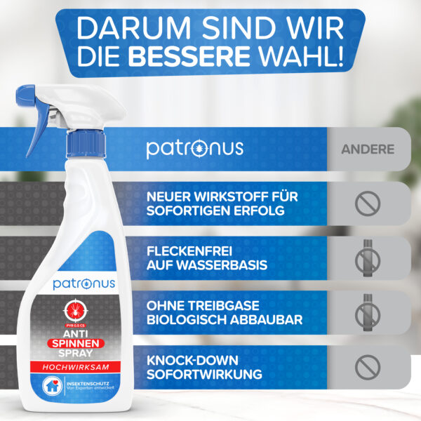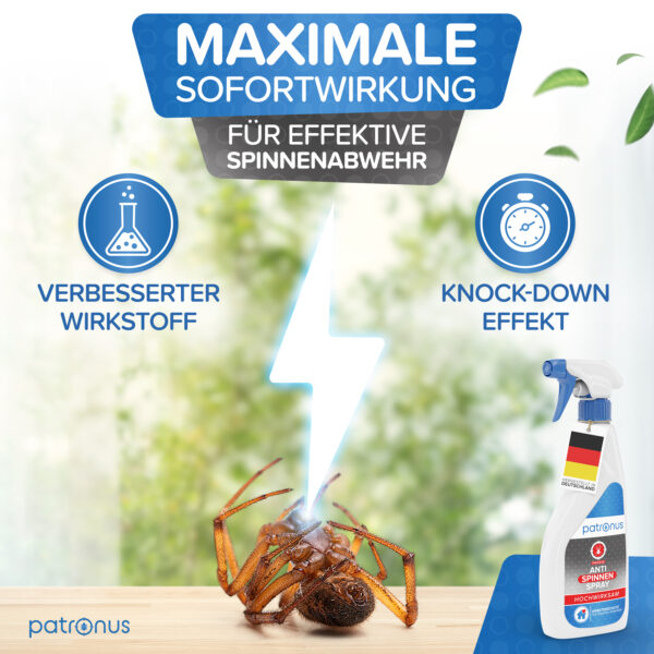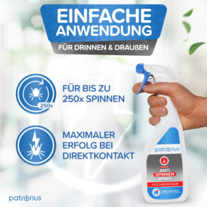 Wichtig: Die besten Erfolge werden bei Direktkontakt erzielt. Die Spinne dafür mit 2-3 kräftigen Sprühstößen direkt ansprühen. Damit ist einer erfolgreiche Bekämpfung innerhalb weniger Minuten garantiert.