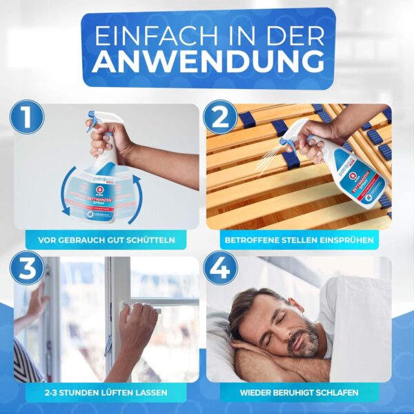 Wichtig: Bei hartnäckigen oder bereits länger andauernden Problemen kann die Anwendung mehrmals pro Woche, bis zum Ausbleiben der Bettwanzen, wiederholt werden.