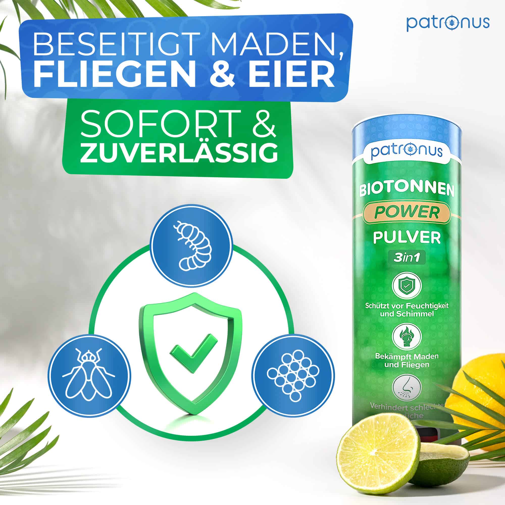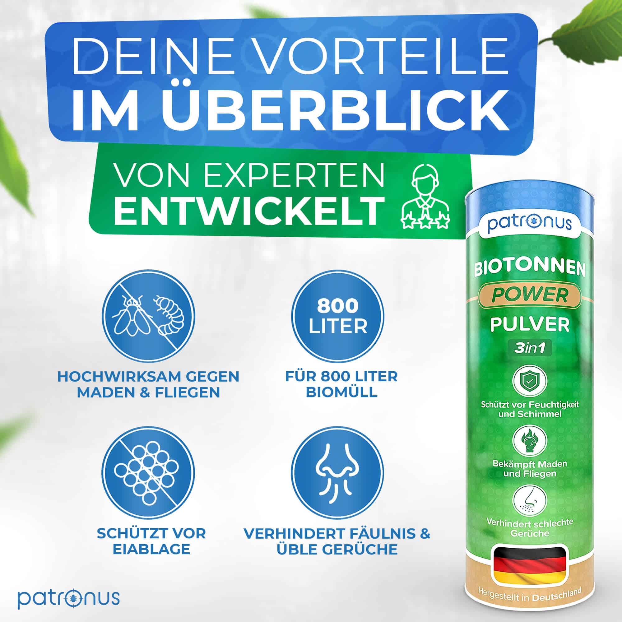 Unser Biotonnenpulver gegen Maden ist speziell formuliert, um eine langanhaltende Wirkung zu bieten. Es ist besonders wirksam gegen Maden und sorgt dafür, dass Ihre Biotonne stets sauber und frei von unangenehmen Gerüchen bleibt. Durch die regelmäßige Anwendung unseres Biotonnenpulvers schaffen Sie eine Umgebung, in der Maden keine Chance haben.