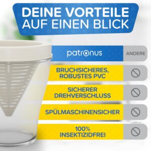 Ja! Die Patronus Fruchtfliegen-Fallen sind geschirrspülmaschinen-geeignet.