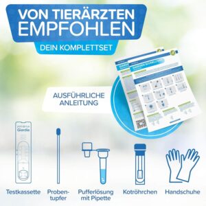 Unsere speziellen Giardien-Tests für Hunde & Katzen haben eine Zuverlässigkeit von 98,33% und damit den hächsten Zuverlässigkeitsfaktor von Giardia-Antigentests auf dem deutschen Markt. Eine einmalige Anwendung reicht daher in der Regel aus.