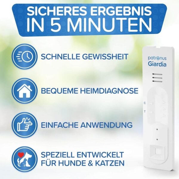 In diesem Fall ist eine Giardien-Infektion bei der Stuhlprobe des Haustieres diagnostiziert worden. Wir empfehlen schnellstmöglich einen Tierarzt aufzusuchen, der eine geeignete Behandlung einleiten wird. Darüberhinaus empfehlen wir dir unser YouTube-Video zum Thema Giardien anzugucken. (Dafür einfach das Video auf der Produktseite anschauen oder bei YouTube "Patronus Giardien" eingeben)