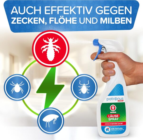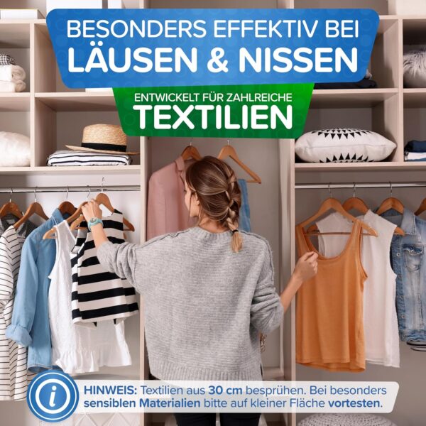 2. Schritt: Textilien und Aufenthaltsorte von Läusen & Nissen aus ca. 30 cm Entfernung besprühen