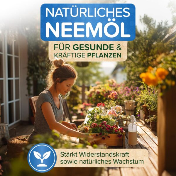 Das kaltgepresste Neemöl unterstützt die natürliche Pflege und Regeneration der Pflanze, besonders bei äußerem Stress. Es handelt sich um ein Pflanzenpflegemittel, nicht um ein Pflanzenschutzmittel im Sinne des Pflanzenschutzgesetzes.