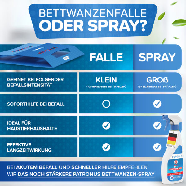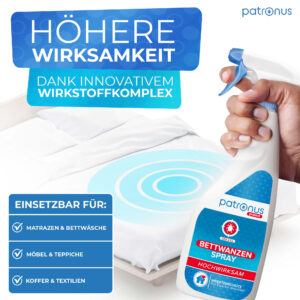 Bist du es leid, Bettwanze in deinem Zuhause zu haben? Mit dem Patronus Bettwanzen-Komplettpaket hast du die ultimative Waffe gegen diese lästigen Bettwanzen. Unser kraftvolles Bettwanzen-Spray erfasst selbst die dunkelsten Verstecke.