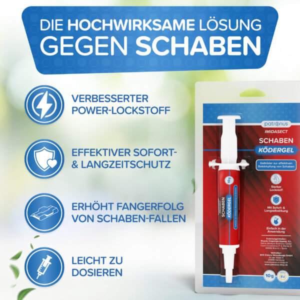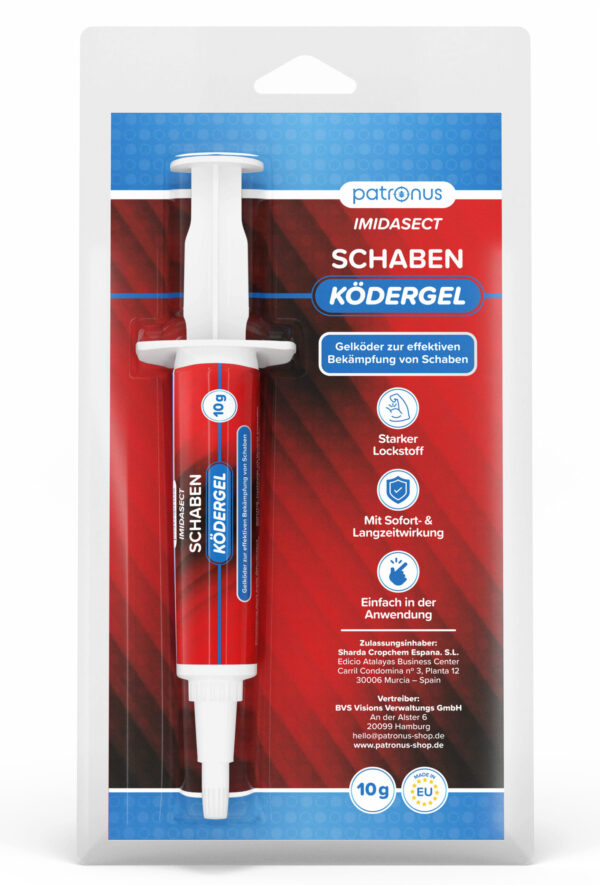 Das Patronus Schaben-Ködergel besteht aus folgenden Inhaltsstoffen: Wirkstoffe: Imidacloprid 2,15% (w/w)
