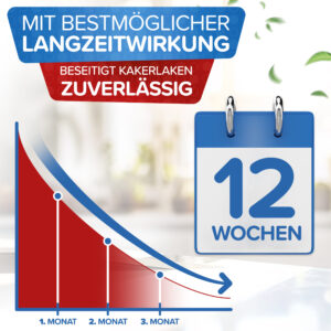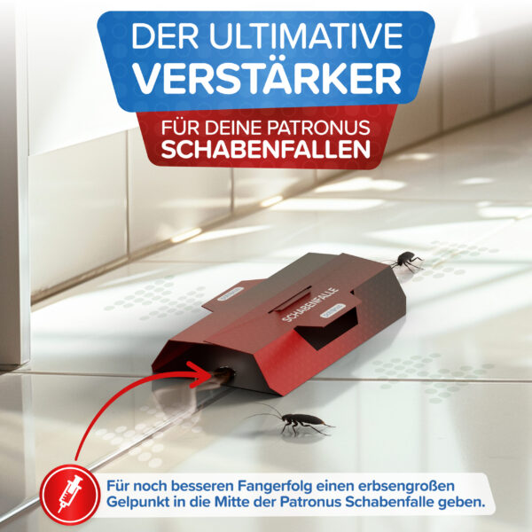 Bei neuartigem oder normalem Befall reicht das einmalige Platzieren des Ködergels an mehreren Stellen vollkommen aus, um dich für mehrere Wochen vor Schaben zu schützen. Bei hartnäckigen oder bereits länger andauernden Problemen sollte jede Woche oder öfter, bis zum Ausbleiben der Schaben, neues Schabengel platziert oder das Patronus Insekten-Spray Universal 750ml angewendet werden.