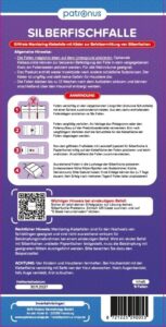 4. Schritt: Monitoring-Erfolg im Auge behalten – Fallen sind bis zu 12 Wochen wirksam. Wichtig: Wird ein akuter Befall mit Silberfischen festgestellt, empfehlen wir das Patronus Silberfische-Spray um schnellstmögliche Erfolge zu erzielen.