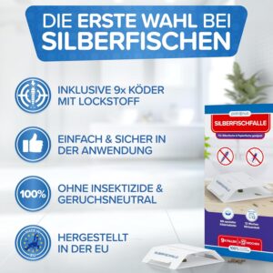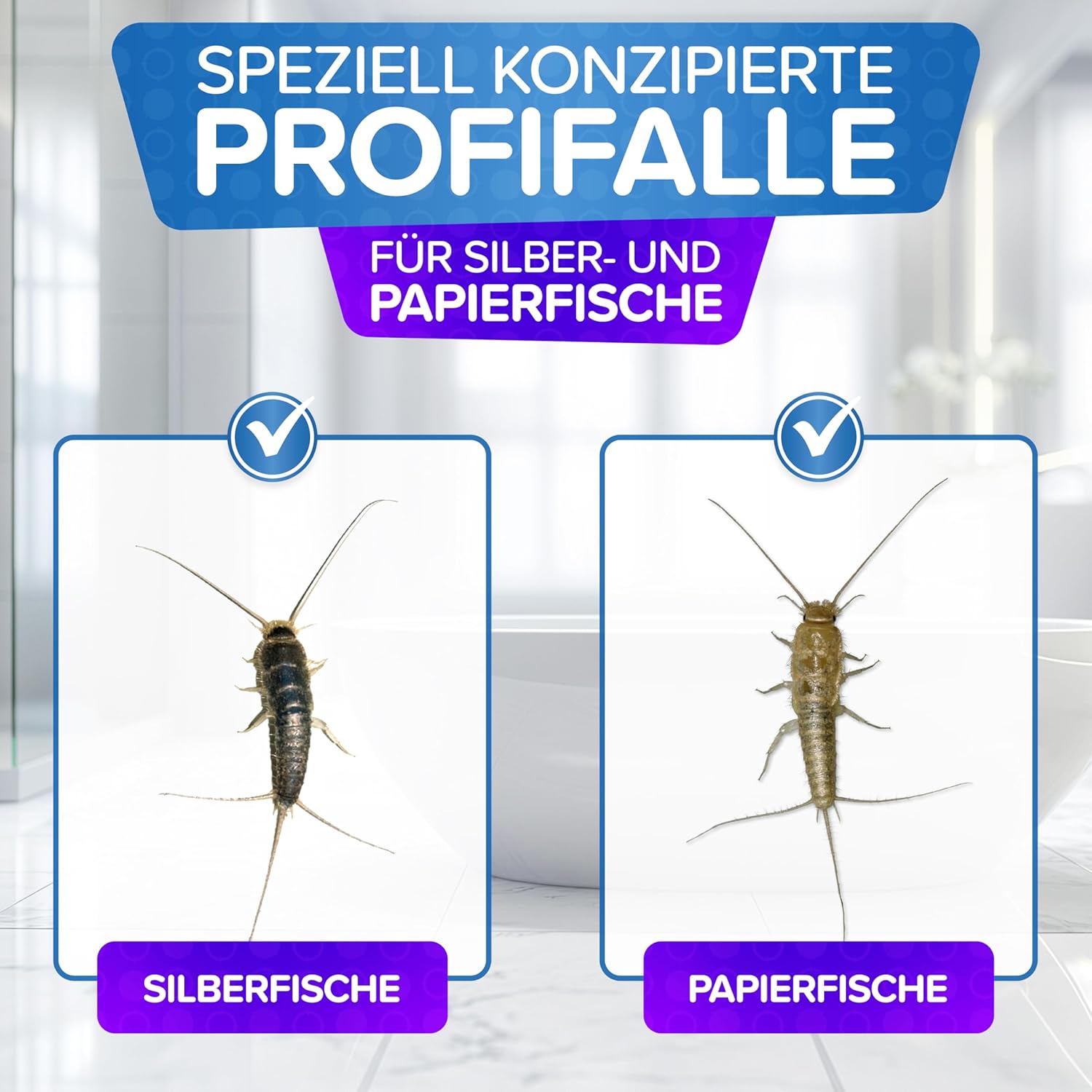Die Silberfisch-Falle kann eingesetzt werden, um sowohl Silberfische zu fangen als auch Papierfische zu beseitigen. Die Falle ist ein besonders gutes Mittel gegen Papier- und Silberfische in der Wohnung, aber auch zum Monitoring, wenn Du bereits Mittel gegen Silberfische eingesetzt hast und nun prüfen möchtest, ob alle Tiere verschwunden sind.