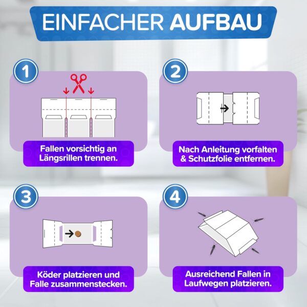 2. Schritt: Die Patronus Silberfischfallen nach Anweisung des Piktograms auf der Produktrückseite aufbauen.