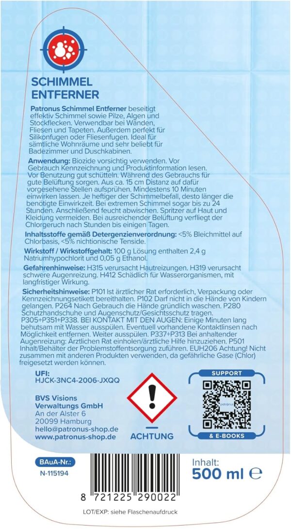 3. Schritt: Je nach Schimmelbefall min. 10 Minuten einwirken lassen