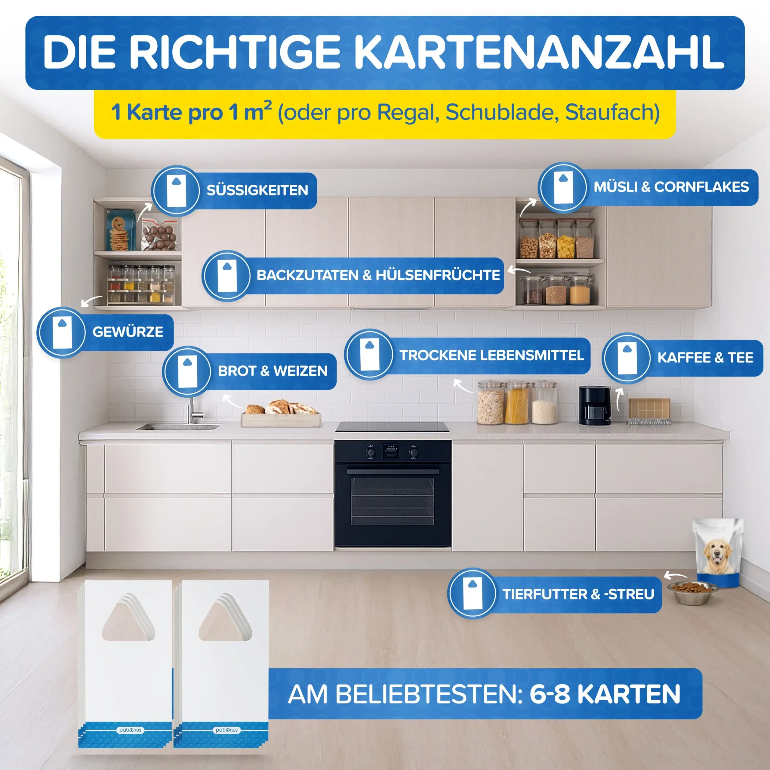 Einfach anwenden – effektiv schützen Einfach anwenden – effektiv schützen Kärtchen auslegen, zurücklehnen und beobachten, wie der Mottenbefall verschwindet – für saubere Vorratsschränke und dauerhafte Ruhe.
