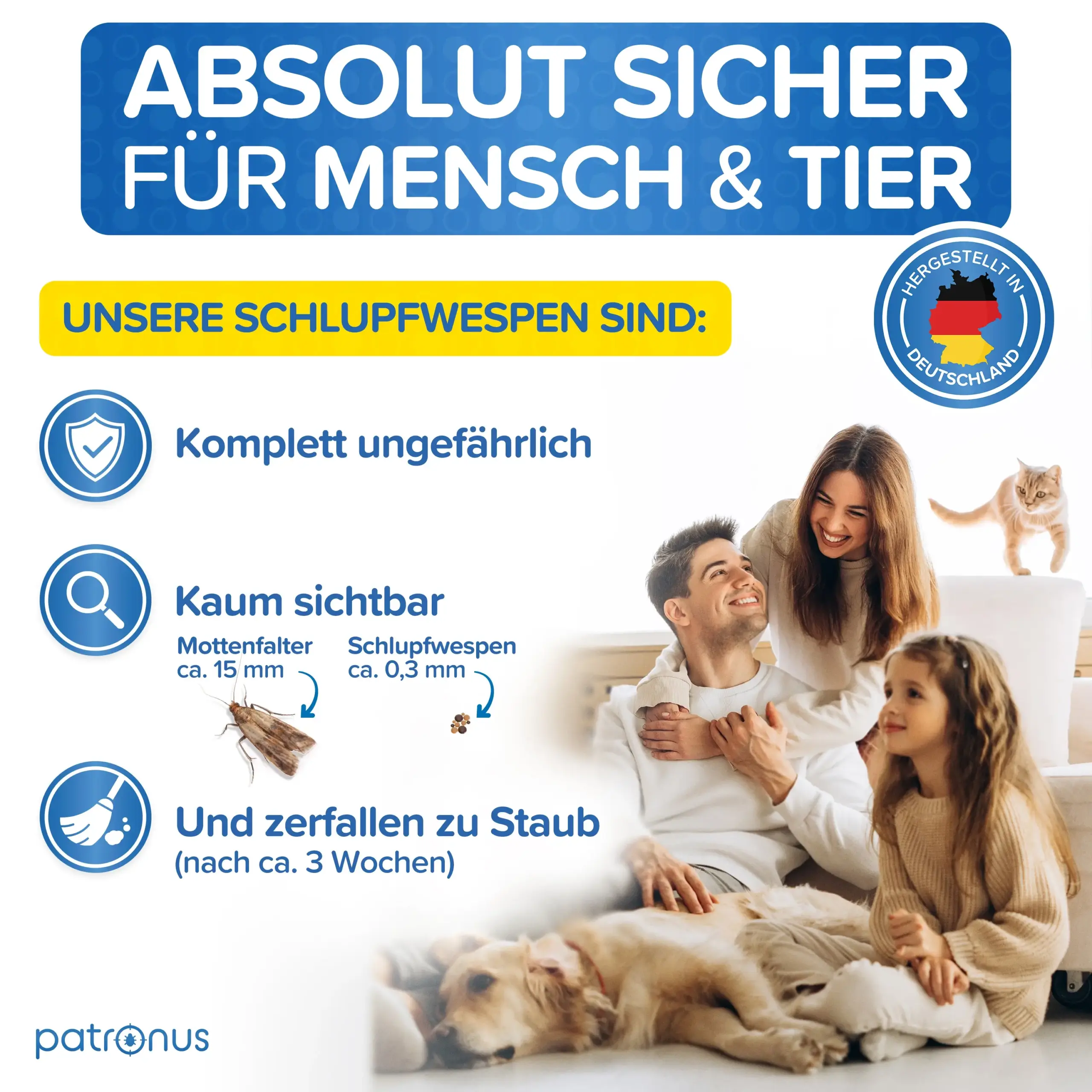 • Giftfreier Mottenschutz: Im Gegensatz zu chemischen Sprays greifen Schlupfwespen nur Eier an – keinerlei Rückstände